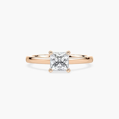 A modern classic with a twist, this Solitaire Ring showcases a striking 1ct princess-cut center diamond set atop a graceful band. Hidden beneath the centerpiece lies a delicate halo of diamonds, adding an unexpected sparkle from every angle. Sophisticated and refined, this ring is the perfect symbol of everlasting love.